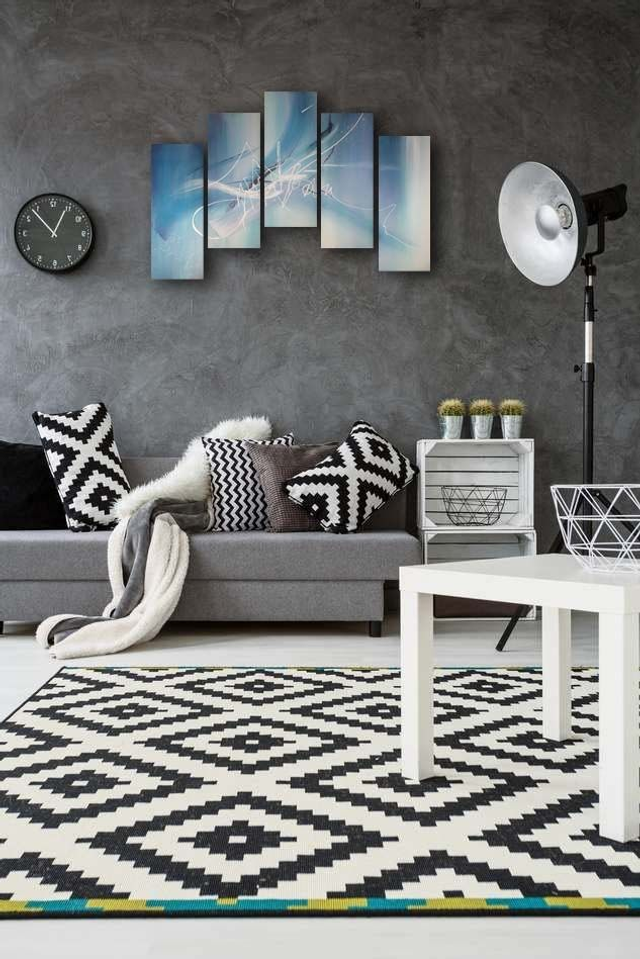 Polyptyque de 5 toiles de coton en 3D, 125cm x 85cm.